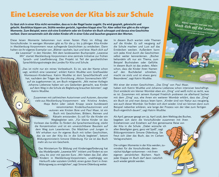 Die aktuelle Ausgabe von BILDUNG FÜR GROß UND KLEIN informiert über das Modellprojekt „Lesereise MV“ sowie über die Kampagne "„Muss man lieben!“ – Lehrkräfte aus MV werben für ihren Beruf. Zur Publikation