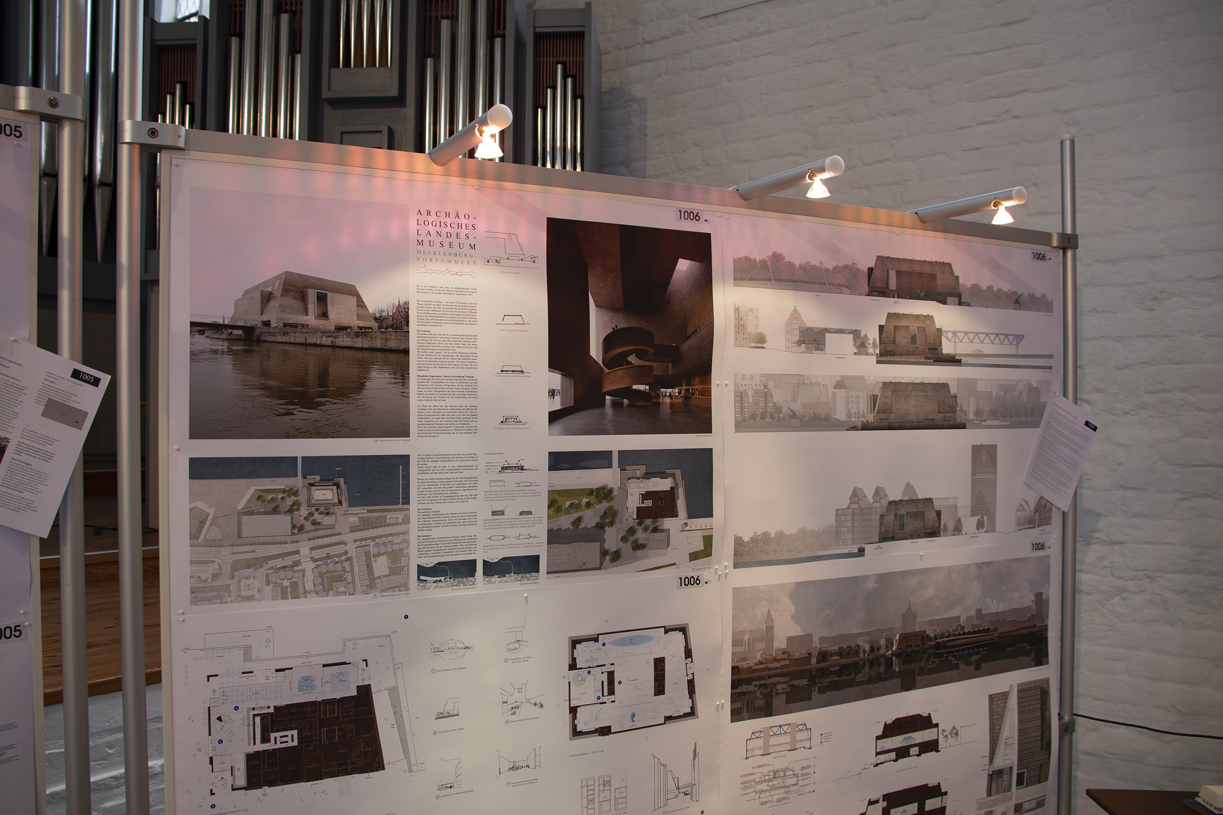 In der Rostocker Nikolaikirche präsentierten heute Kulturministerin Bettina Martin und Finanzstaatssekretärin Dr. Carola Voß die besten Entwürfe und das Gewinnerteam zum Neubau für das Archäologische Landesmuseum Mecklenburg-Vorpommern. Ein Preisgericht aus 15 Expertinnen und Experten hat in mehreren Bewertungsrunden aus einem Feld von 20 Bewerbergemeinschaften aus acht Staaten die 3 besten Wettbewerbsbeiträge gewählt.