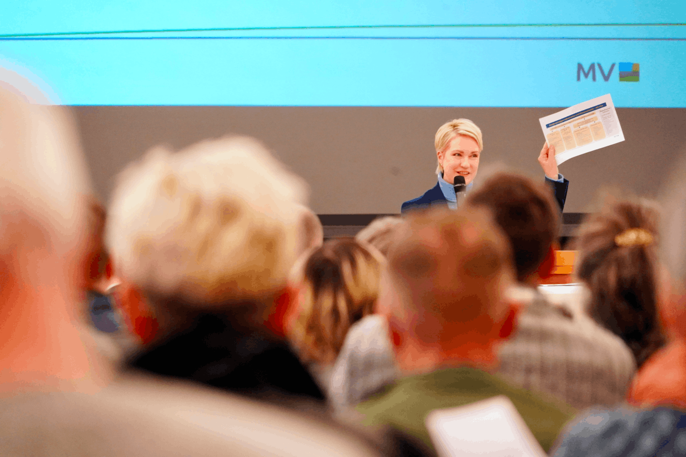 Mit der Vereinbarung zwischen dem Land und der kommunalen Ebene wird geregelt, wie die Mittel aus dem Sondervermögen zwischen Land und Kommunen verteilt werden. Unterzeichnet haben Ministerpräsidentin Manuela Schwesig sowie Vertreterinnen und Vertreter von Landkreistag Mecklenburg-Vorpommern und Städte- und Gemeindetag Mecklenburg-Vorpommern.