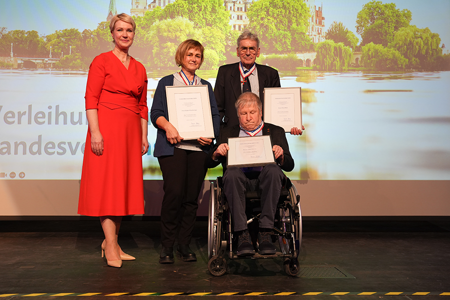 Zudem verlieh die Ministerpräsidentin den Verdienstorden des Landes Mecklenburg-Vorpommern an eine Bürgerin und zwei Bürger für deren besonderes Engagement.